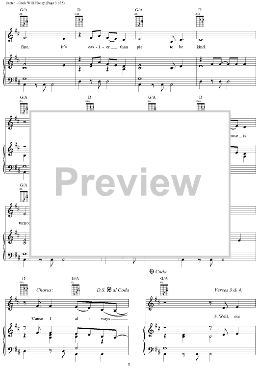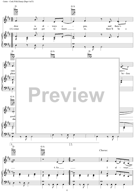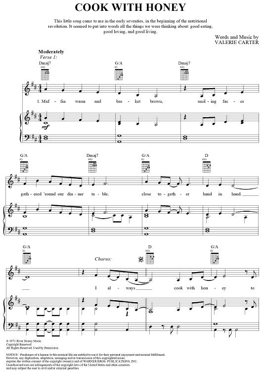 Digital Sheet Music for Cook With Honey by Judy Collins, Valerie Carter scored for Piano/Vocal/Chords; id:285932