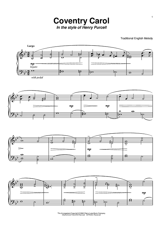 Digital Sheet Music for Coventry Carol by Robert Croo scored for Piano; id:385571