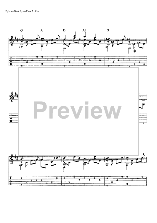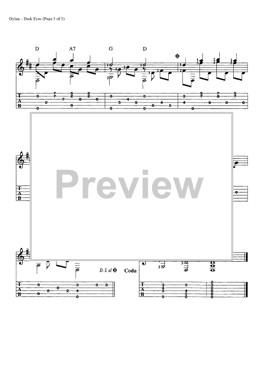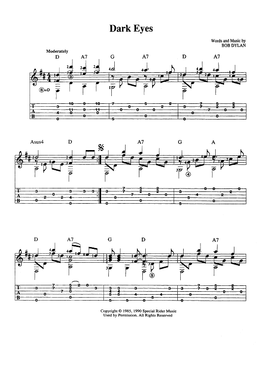 Digital Sheet Music for Dark Eyes by Bob Dylan scored for Guitar Tab; id:445533