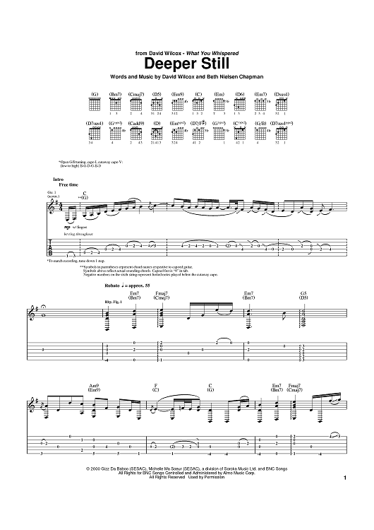 Digital Sheet Music for Deeper Still by David Wilcox, Beth Nielsen Chapman scored for Guitar Tab; id:373026