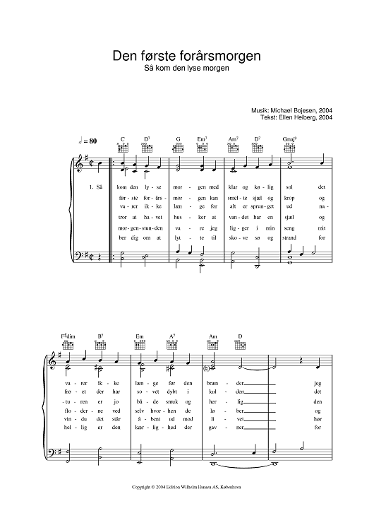 Digital Sheet Music for Den Første Forårsmorgenmorgen - Så Kom Den Lyse Morgen by Michael Bojesen, Ellen Heiberg scored for Piano/Vocal/Chords; id:388461