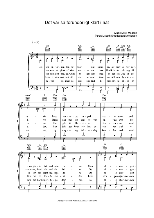 Digital Sheet Music for Det Var Så Forunderligt Klart I Nat by Lisbeth Smedegaard Andersen, Axel Madsen scored for Piano/Vocal/Chords; id:389293