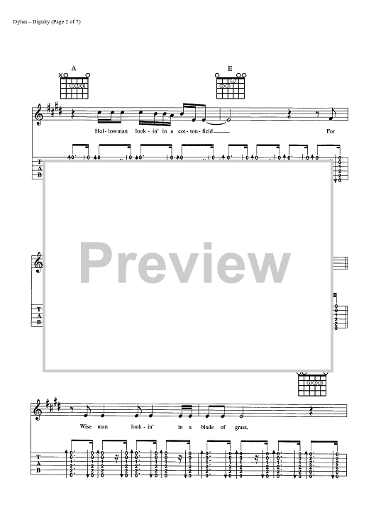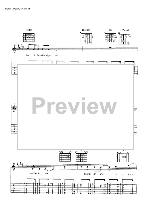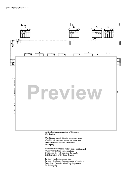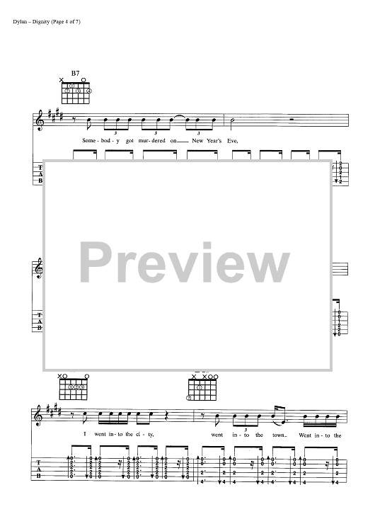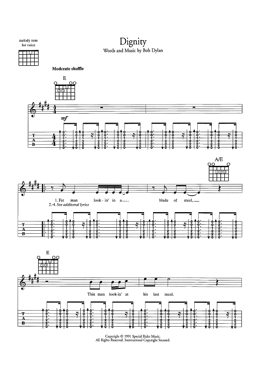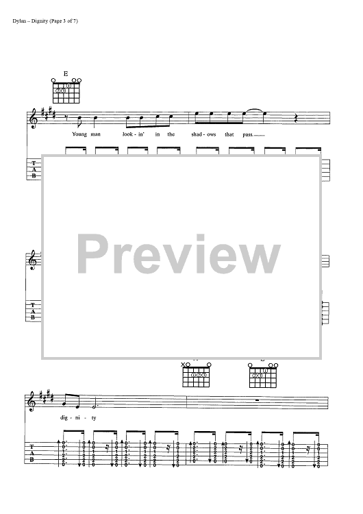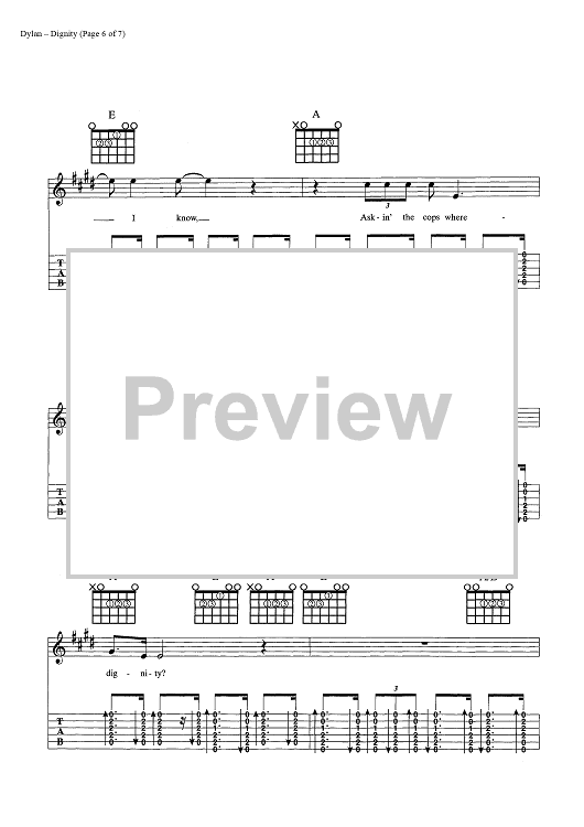 Digital Sheet Music for Dignity by Bob Dylan scored for Guitar Tab/Vocal/Chords; id:445427