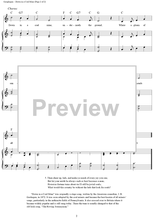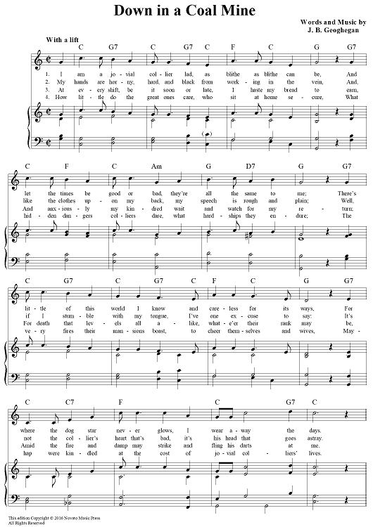 Digital Sheet Music for Down In A Coal Mine by J. B. Geoghegan scored for Piano/Vocal/Chords; id:268961