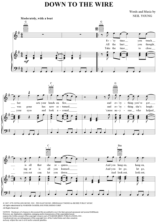 Digital Sheet Music for Down to the Wire by Neil Young scored for Piano/Vocal/Chords; id:262943