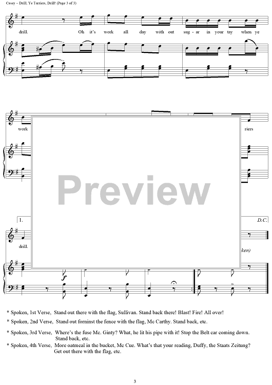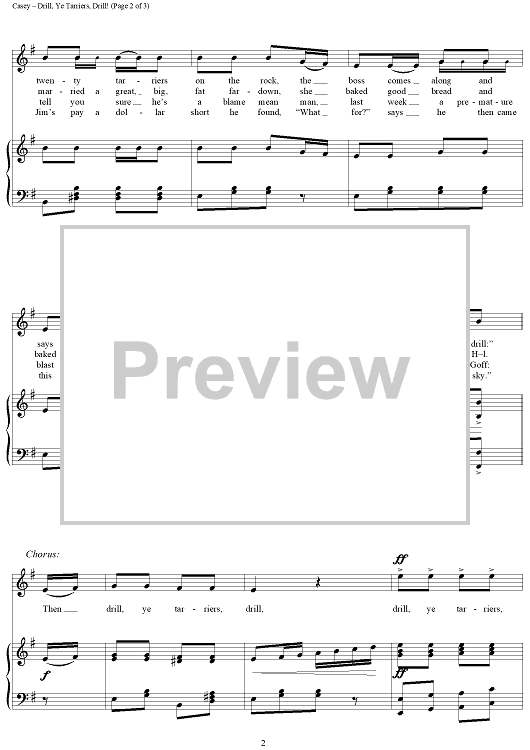 Digital Sheet Music for Drill, Ye Tarriers, Drill! by Thomas F. Casey, Charles Connolly scored for Piano/Vocal/Chords; id:456326