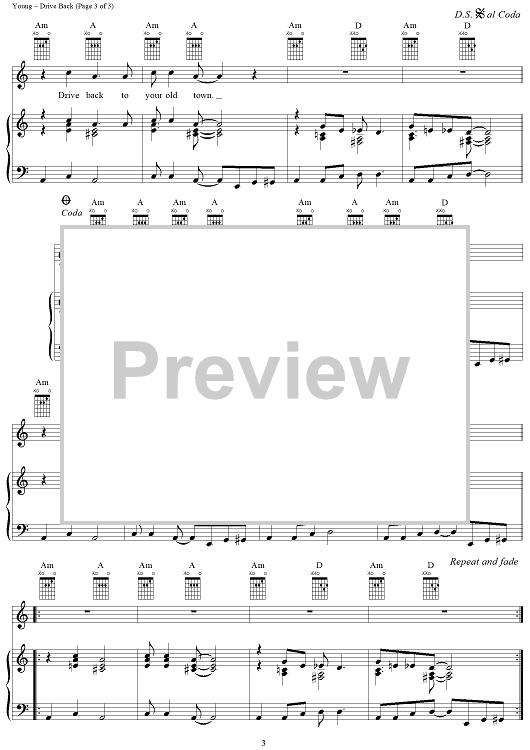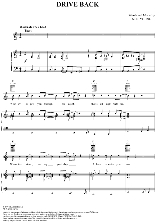 Digital Sheet Music for Drive Back by Neil Young scored for Piano/Vocal/Chords; id:262951