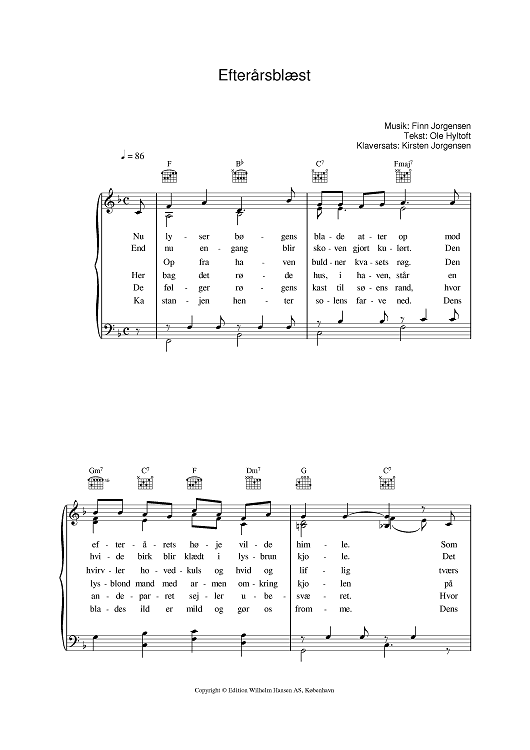 Digital Sheet Music for Efterårsblæst by Ole Hyltoft, Finn Jorgensen scored for Piano/Vocal/Chords; id:389296