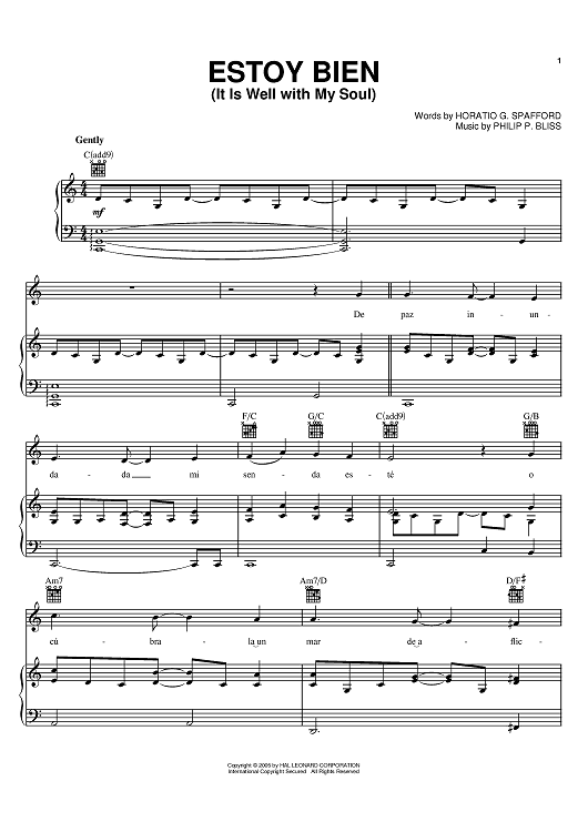 "Estoy Bien (It Is Well With My Soul)" Sheet Music by Horatio G. Spafford