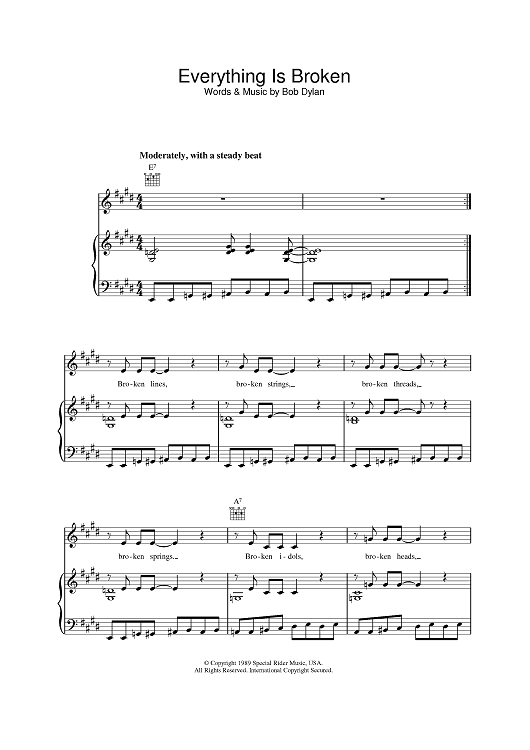 Digital Sheet Music for Everything Is Broken by Bob Dylan scored for Piano/Vocal/Chords; id:388685