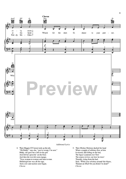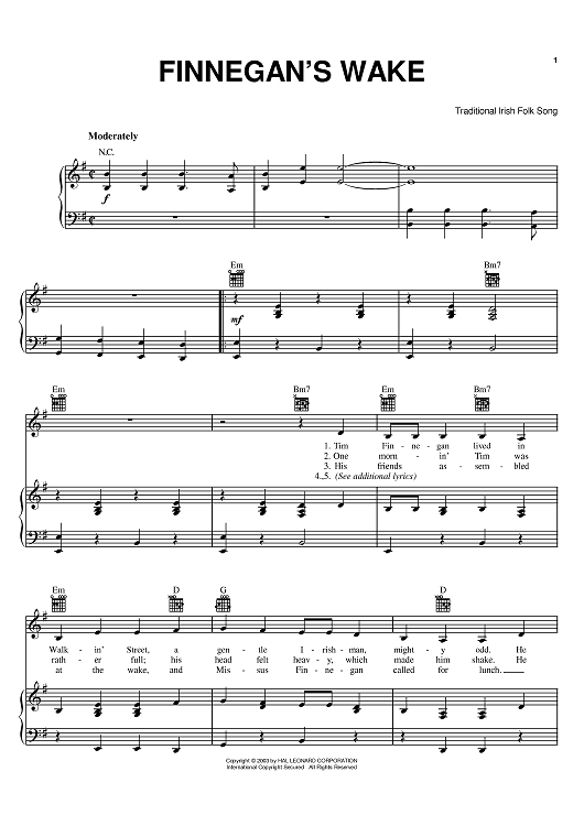 Digital Sheet Music for Finnegan's Wake by scored for Piano/Vocal/Chords; id:373150