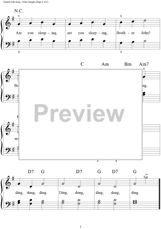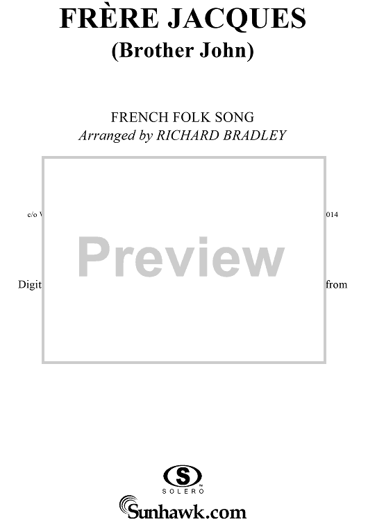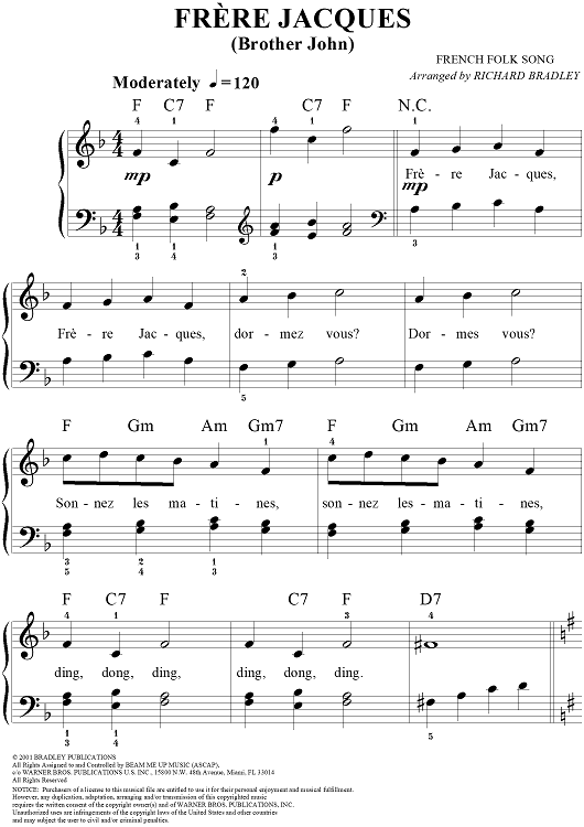 Digital Sheet Music for Frère Jacques by Richard Bradley, French Folk Song scored for Easy Piano/Vocal; id:285541