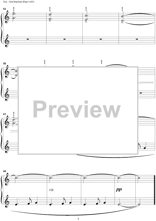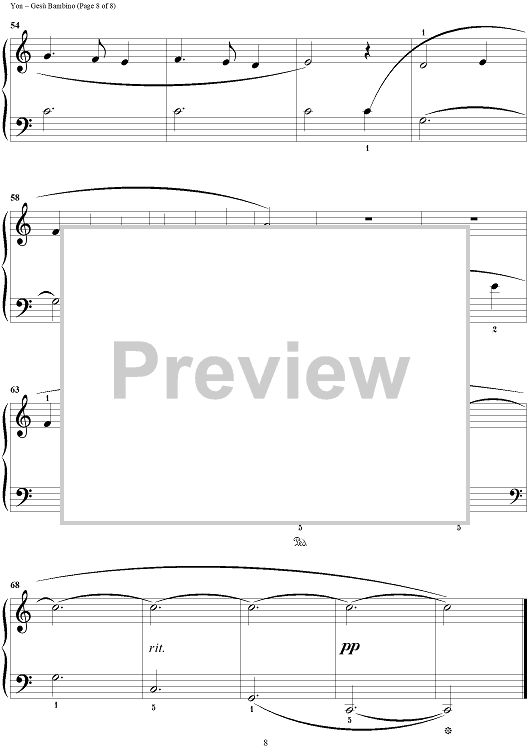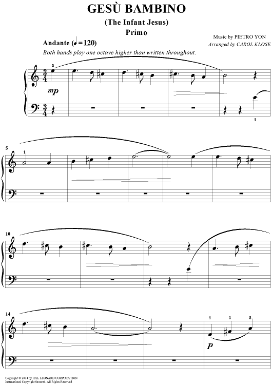 Digital Sheet Music for Gesù Bambino (The Infant Jesus) by Carol Klose, Pietro Yon scored for 1 Piano, 4 Hands; id:375437