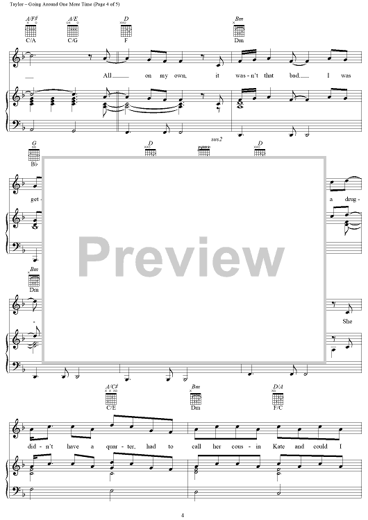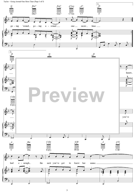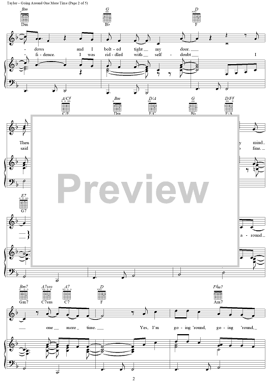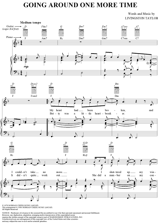 Digital Sheet Music for Going Around One More Time by James Taylor, Livingston Taylor scored for Piano/Vocal/Chords; id:131720