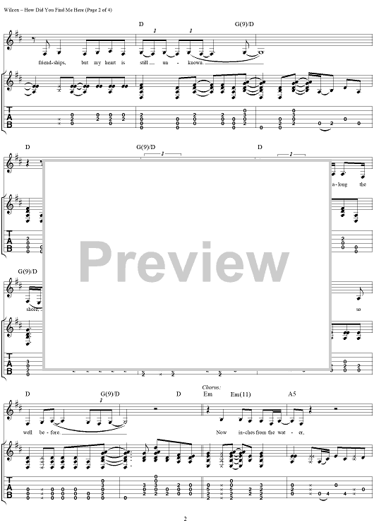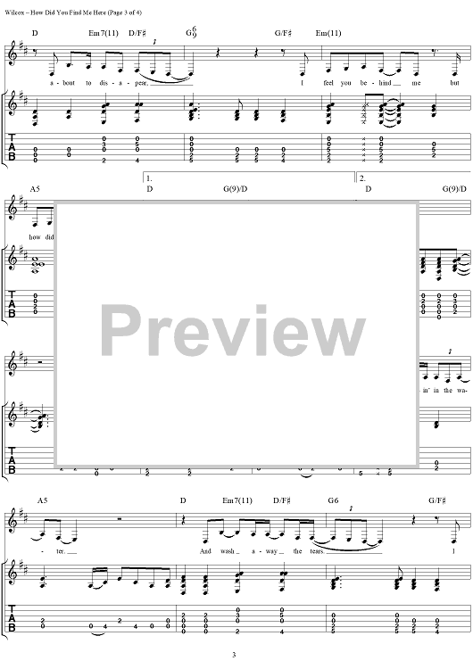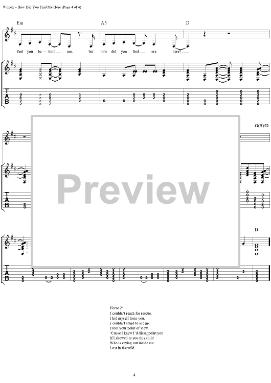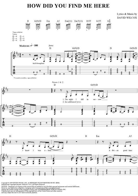 Digital Sheet Music for How Did You Find me Here by David Wilcox scored for Guitar Tab/Vocal; id:264012