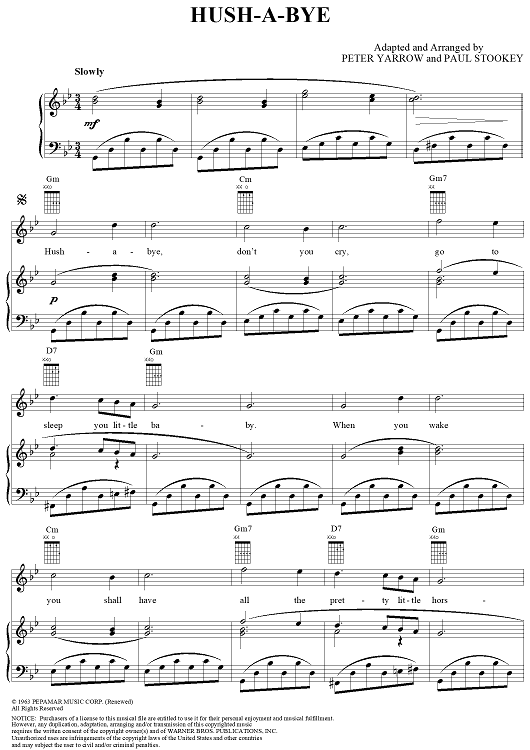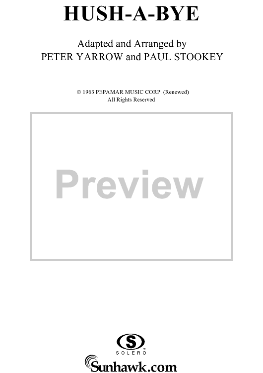 "Hush-A-Bye" Sheet Music by Peter, Paul and Mary