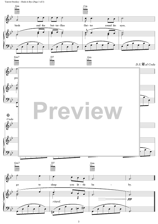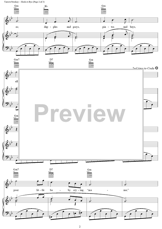 Digital Sheet Music for Hush-A-Bye by Paul Stookey, Peter Yarrow, Peter, Paul and Mary, Traditional scored for Piano/Vocal/Chords; id:124177