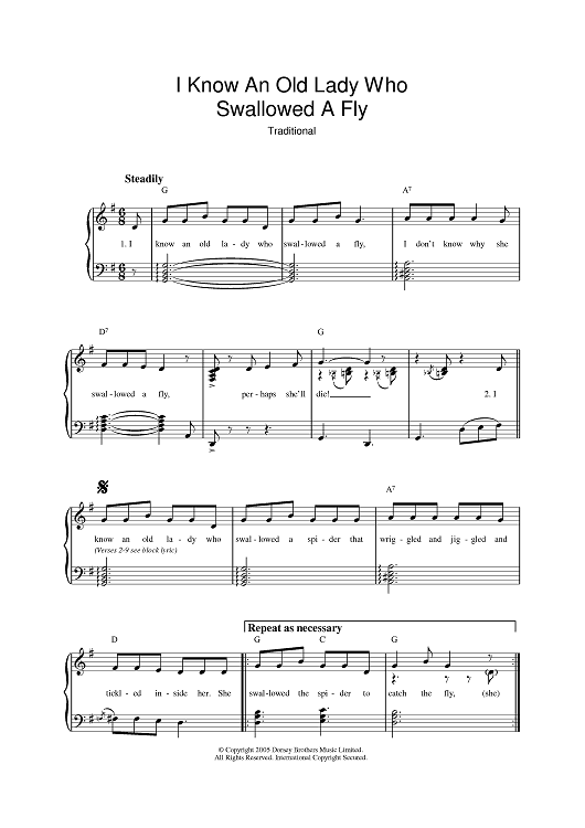 "I Know An Old Lady Who Swallowed A Fly" Sheet Music by