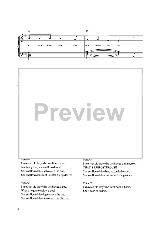 Digital Sheet Music for I Know An Old Lady Who Swallowed A Fly by scored for Piano/Vocal/Chords; id:386119