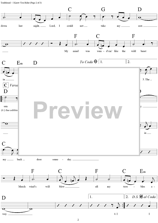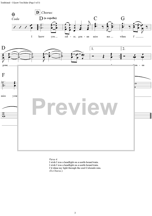 "I Know You Rider" Sheet Music by Traditional