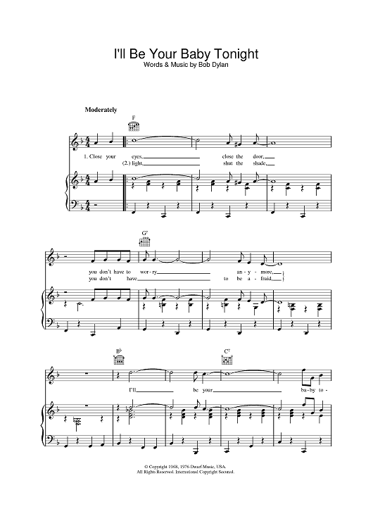 Digital Sheet Music for I'll Be Your Baby Tonight by Bob Dylan scored for Piano/Vocal/Chords; id:388691