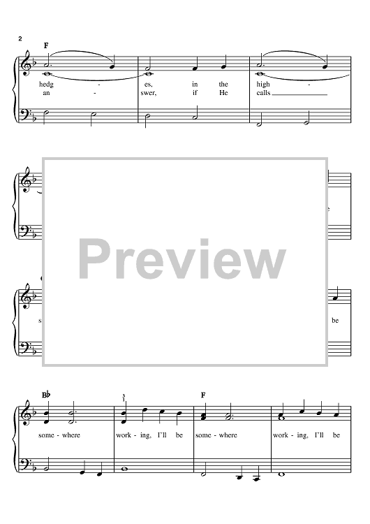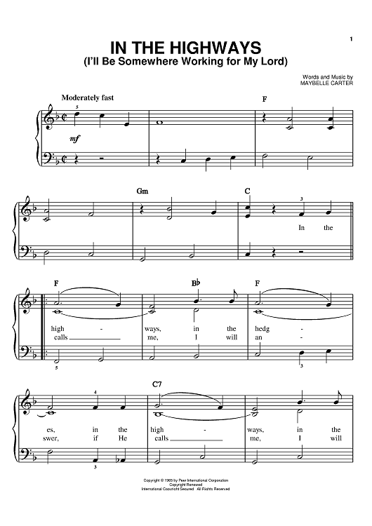 Digital Sheet Music for In The Highways (I'll Be Somewhere Working For My Lord) by Maybelle Carter scored for Easy Piano; id:372400