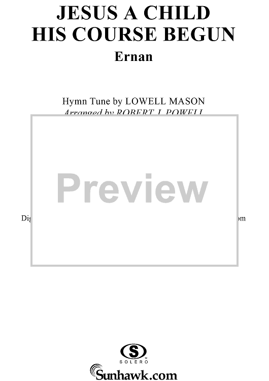 "Jesus a Child His Course Begun" Sheet Music by Lowell Mason