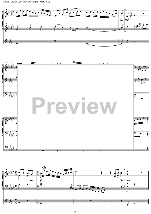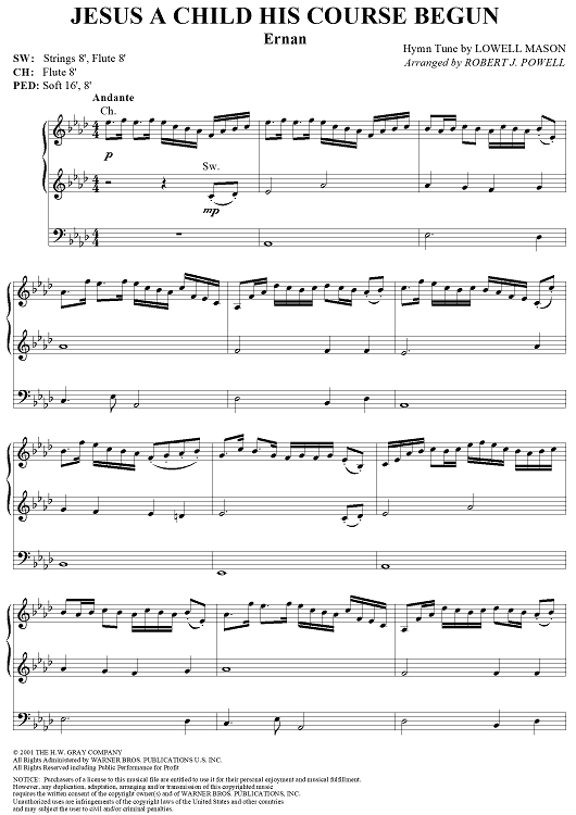 Digital Sheet Music for Jesus a Child His Course Begun by Robert J. Powell, Lowell Mason scored for Organ Solo; id:286988