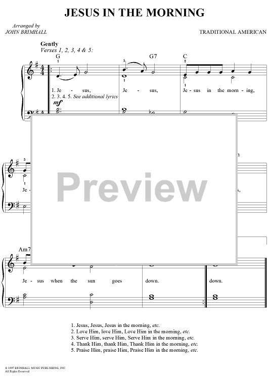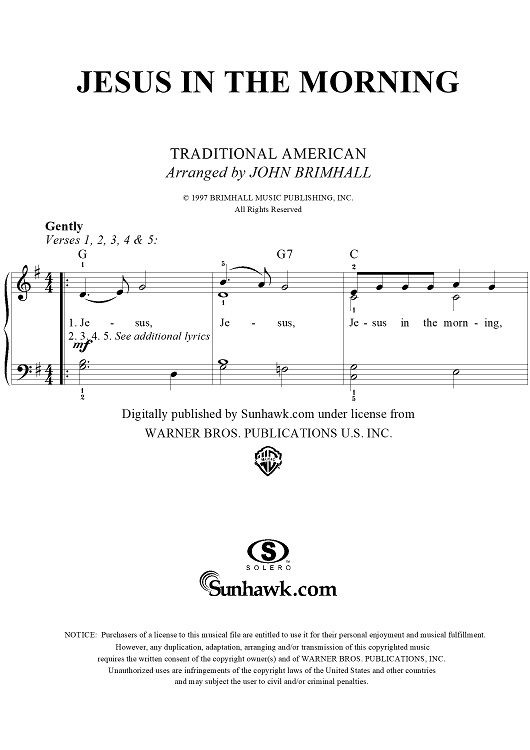 Digital Sheet Music for Jesus in the Morning by John Brimhall, Traditional scored for Easy Piano/Vocal; id:261035