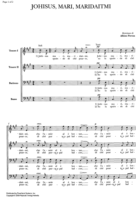 Digital Sheet Music for Johisus, Mari, maridaitmi by , Albino Perosa, Traditional scored for Male Choir; id:334525