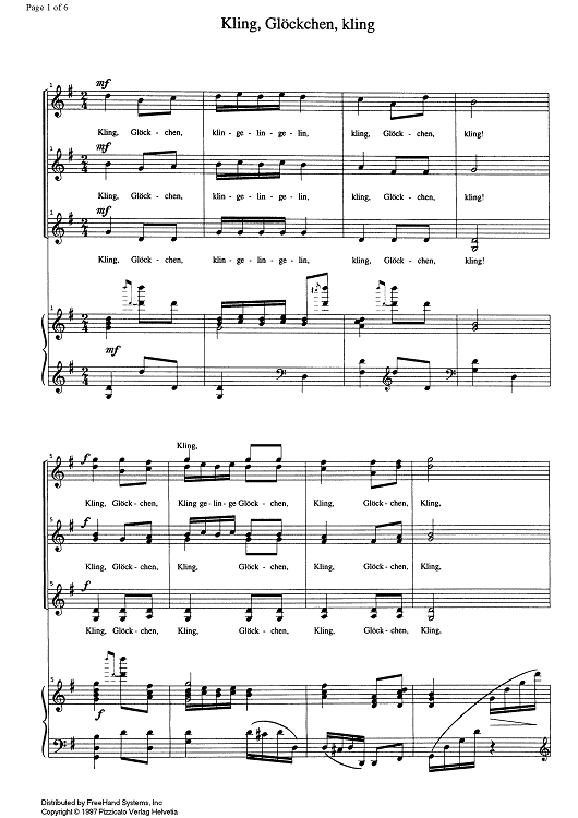 Digital Sheet Music for Kling, Glöckchen, Kling by , Marco Sofianopulo, Traditional scored for Female Chorus/Piano; id:329849