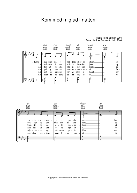 Digital Sheet Music for Kom Med Mig Ud I Natten by Janicke Becker Arnbak, Irene Becker scored for Piano/Vocal/Chords; id:389916