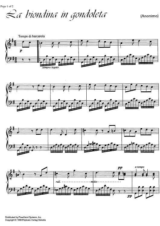 Digital Sheet Music for La biondina in gondoleta by Unknown Writer, G. Danieli scored for Piano Solo; id:329298
