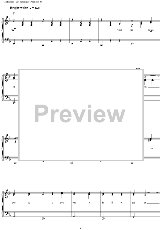 Digital Sheet Music for Las Mañanitas by Traditional scored for Piano/Vocal/Chords; id:261381