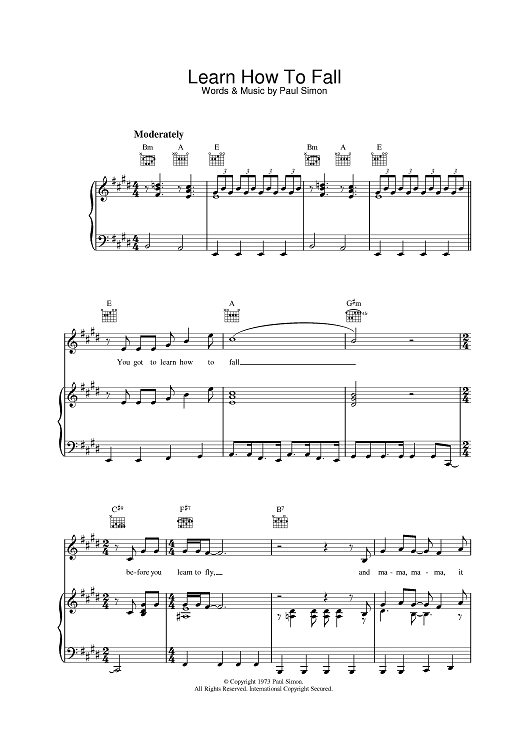 Digital Sheet Music for Learn How To Fall by Paul Simon scored for Piano/Vocal/Chords; id:390825