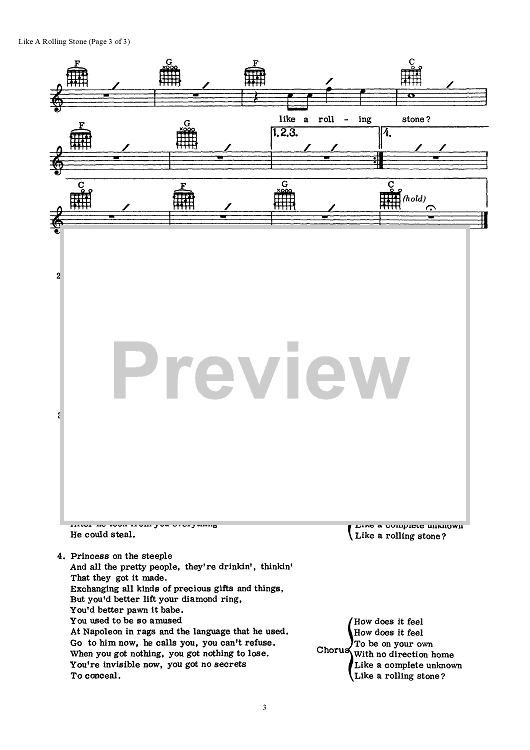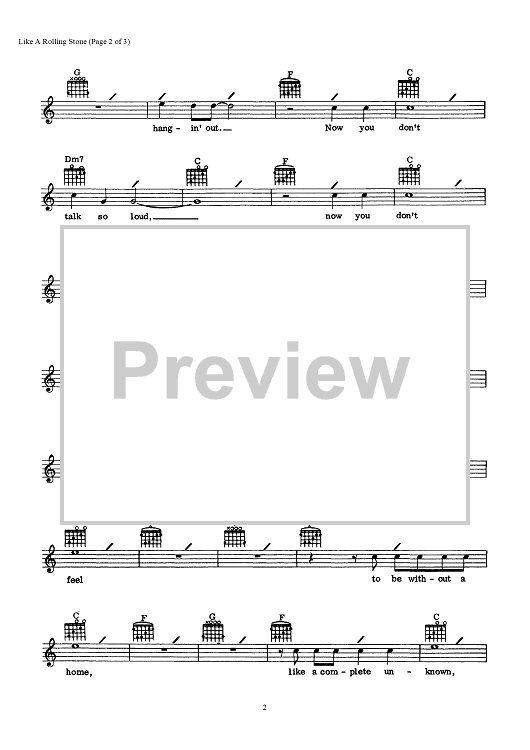 Digital Sheet Music for Like A Rolling Stone by Bob Dylan scored for Lead Sheet; id:466302
