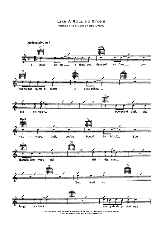"Like A Rolling Stone" Sheet Music by Bob Dylan