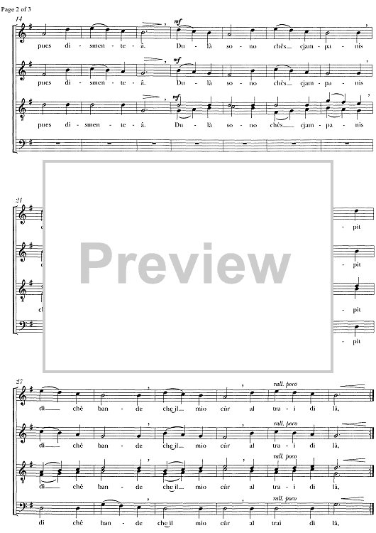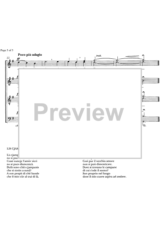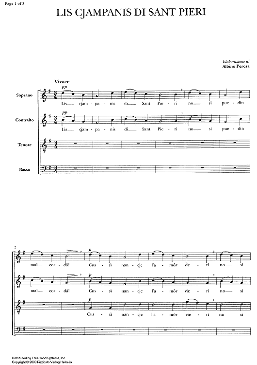 Digital Sheet Music for Lis cjampanis di sant pieri by , Albino Perosa, Traditional scored for SATB Choir; id:334533
