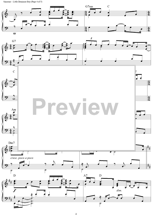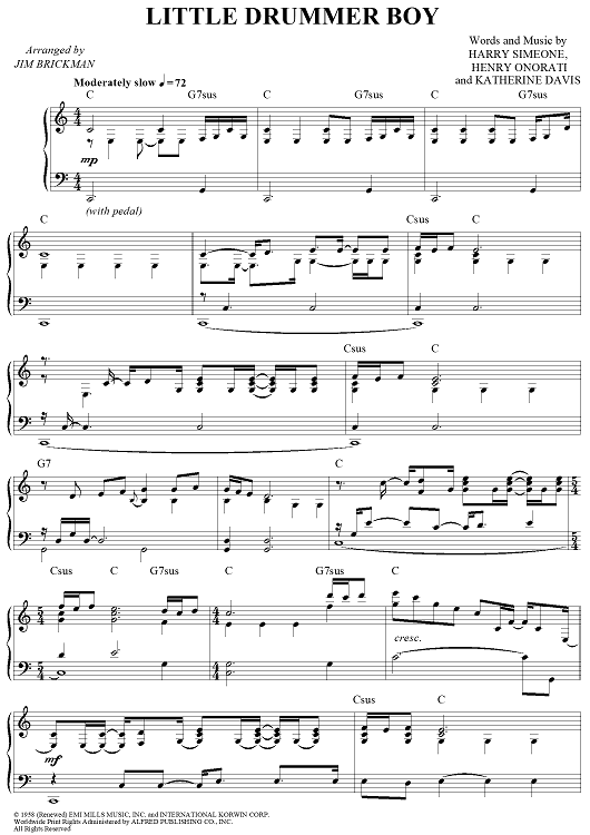Digital Sheet Music for Little Drummer Boy by Jim Brickman, Henry Onorati, Harry Simeone, Katherine Davis scored for Piano Solo; id:418107