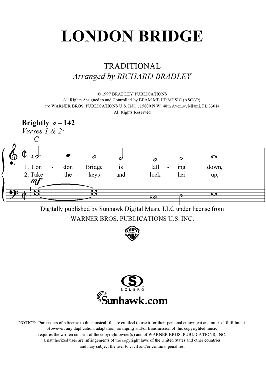 Digital Sheet Music for London Bridge by Richard Bradley, Traditional scored for Easy Piano/Vocal; id:293016