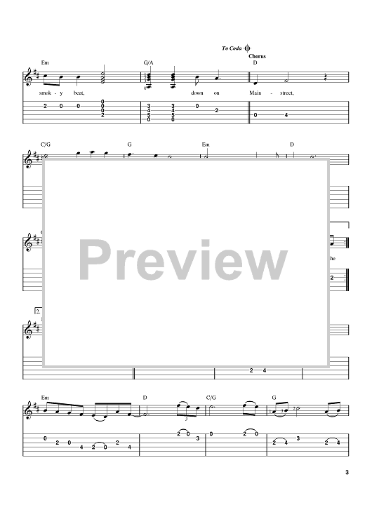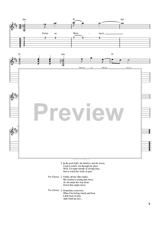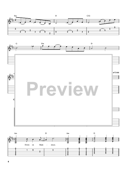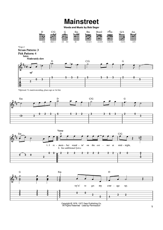 Digital Sheet Music for Mainstreet by Bob Seger scored for Easy Guitar Tab; id:372010
