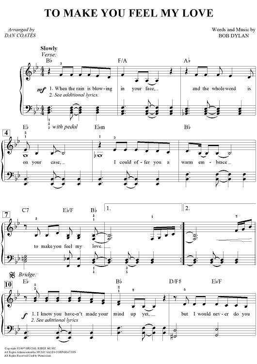 "Make You Feel My Love" Sheet Music by Bob Dylan