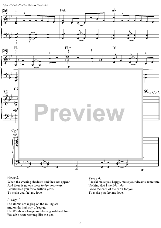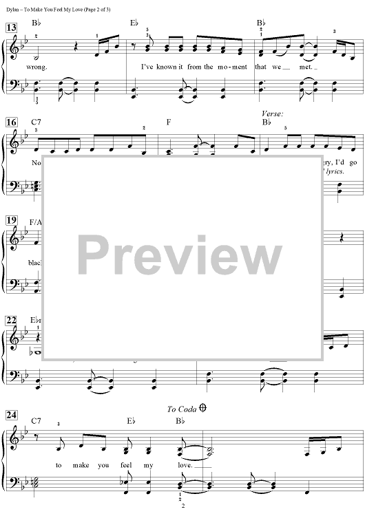 Digital Sheet Music for Make You Feel My Love by Dan Coates, Bob Dylan scored for Piano/Vocal/Chords; id:444703