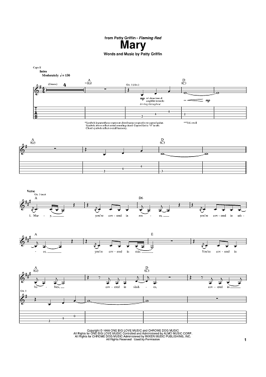 Digital Sheet Music for Mary by Patty Griffin scored for Guitar Tab; id:371645