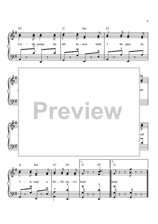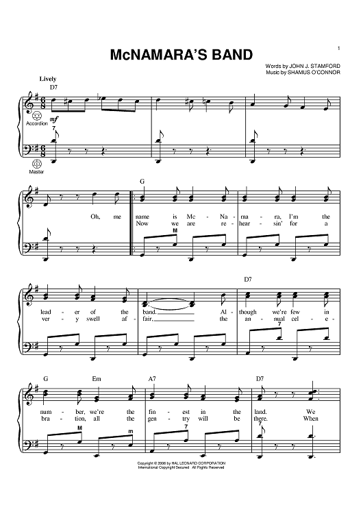Digital Sheet Music for McNamara's Band by Shamus O'Connor, John J. Stamford scored for Accordion; id:391099