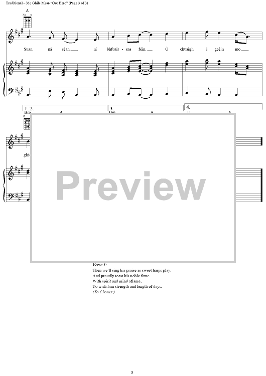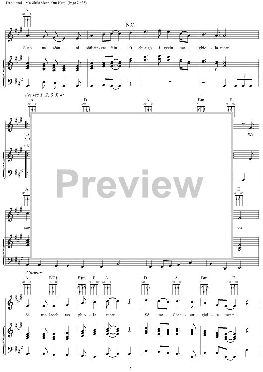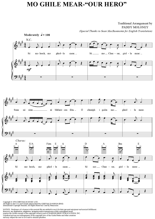 Digital Sheet Music for Mo Ghile Mear-"Our Hero" by Sting, The Chieftains, Paddy Moloney, Traditional scored for Piano/Vocal/Chords; id:261461