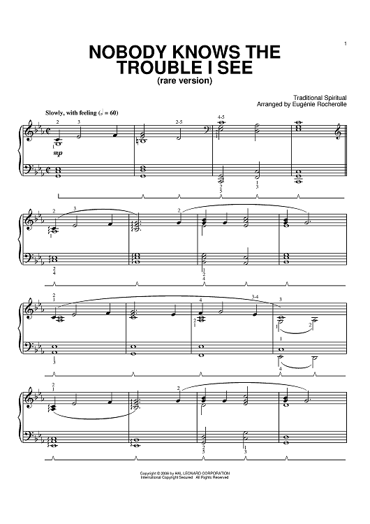 Digital Sheet Music for Nobody Knows De Trouble I See (Rare Version) by Traditional Spiritual, Eugénie R. Rocherolle scored for Piano; id:394478