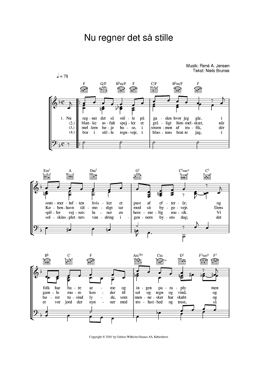 Digital Sheet Music for Nu Regner Det Så Stille by Niels Brunse, Rene A. Jensen scored for Piano/Vocal/Chords; id:390006