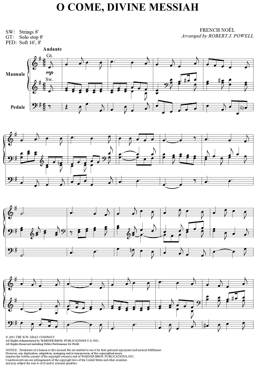 Digital Sheet Music for O Come, Divine Messiah by Robert J. Powell, Traditional scored for Organ Solo; id:286980