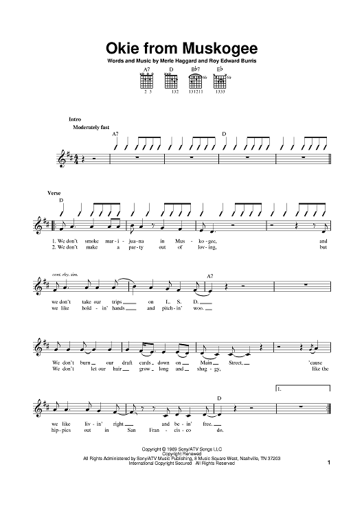 "Okie From Muskogee" Sheet Music by Merle Haggard